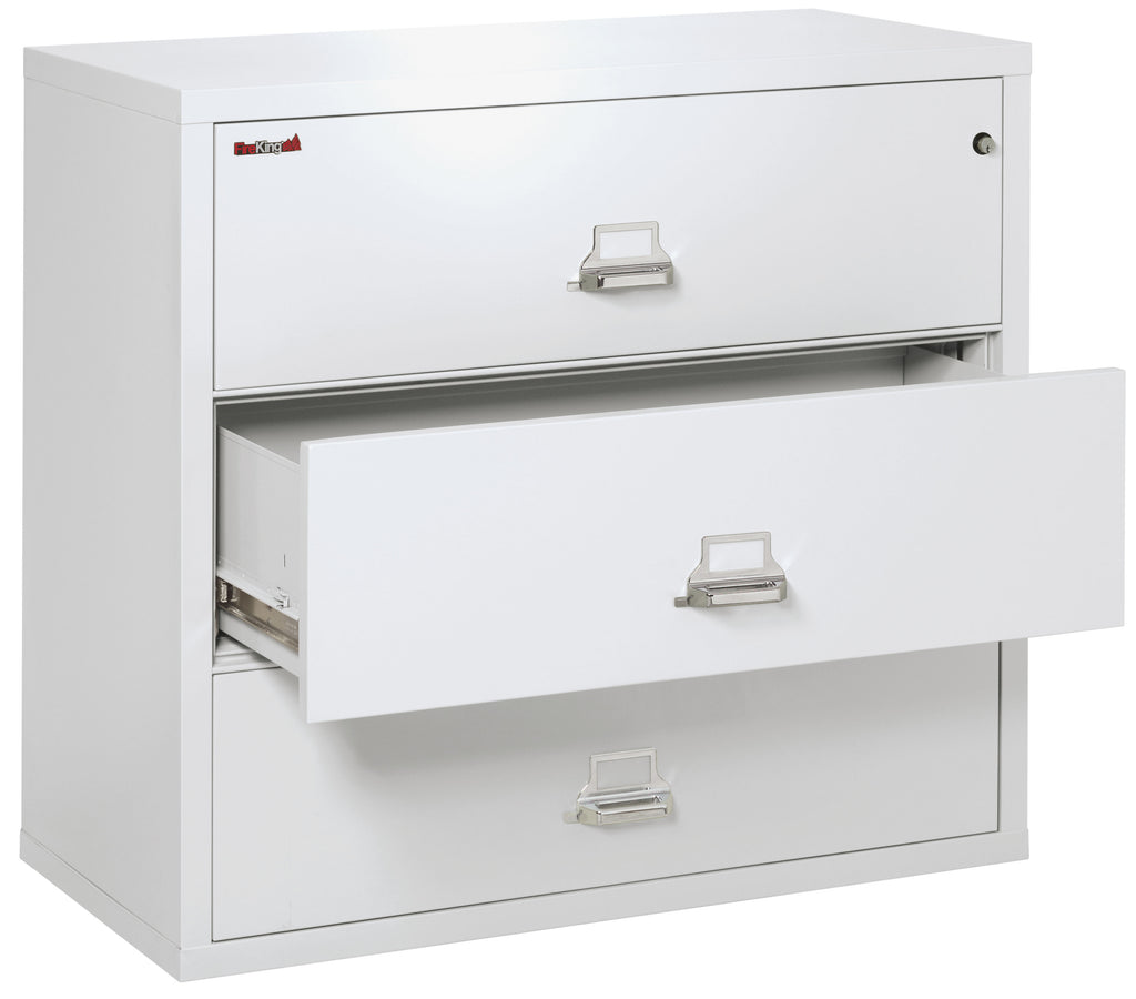 FireKing Fire Resistant File Cabinet - 3 Drawer Lateral 44" Wide - Arctic White