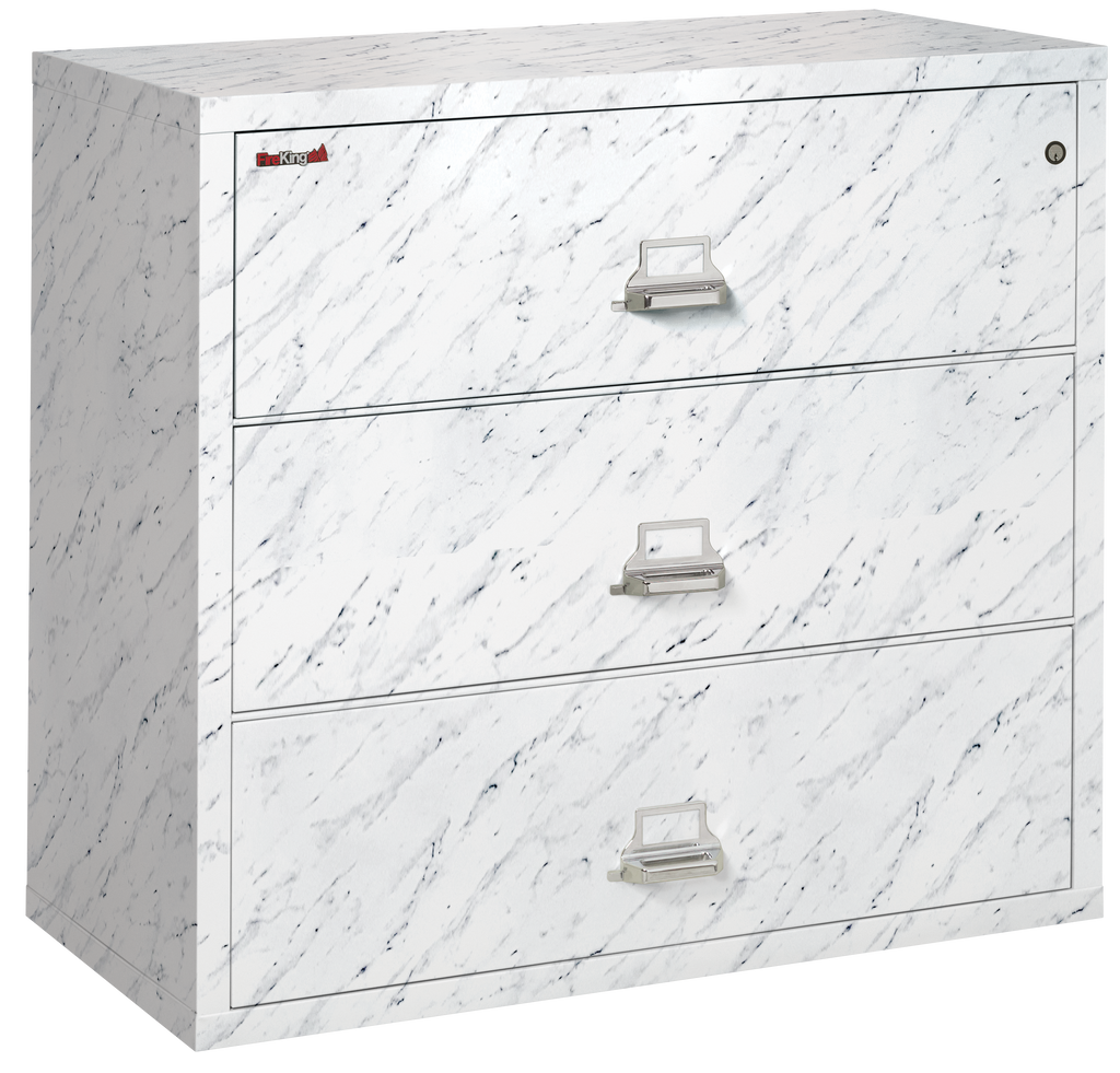 FireKing Fire Resistant File Cabinet - 3 Drawer Lateral 44" Wide - Calcutta Marble