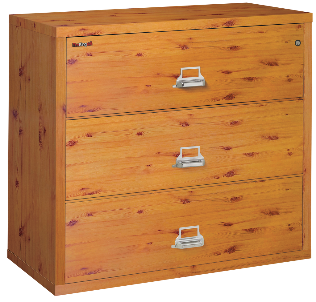 FireKing Fire Resistant File Cabinet - 3 Drawer Lateral 44" Wide - Knotty Pine