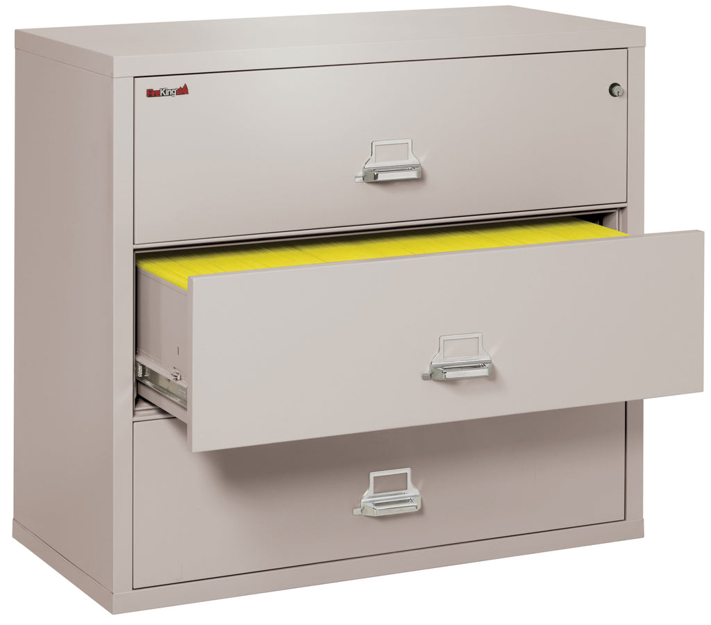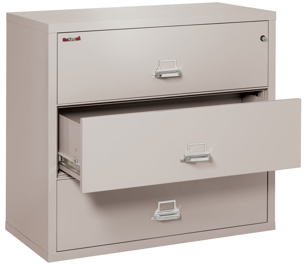 FireKing Fire Resistant File Cabinet - 3 Drawer Lateral 44" Wide - Platinum- Regular price